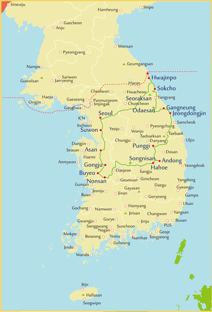 | Day 7 | Buyeo - Gongju - Suwon - Seoul | 210km |