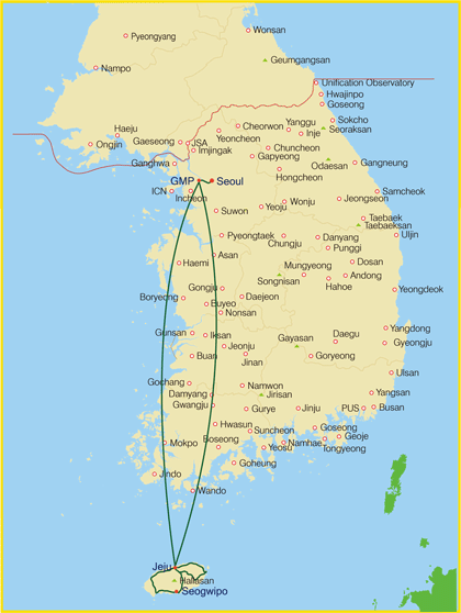 with the cliffs, the sea, and several small islands offshore. Return late afternoon flight to Seoul.