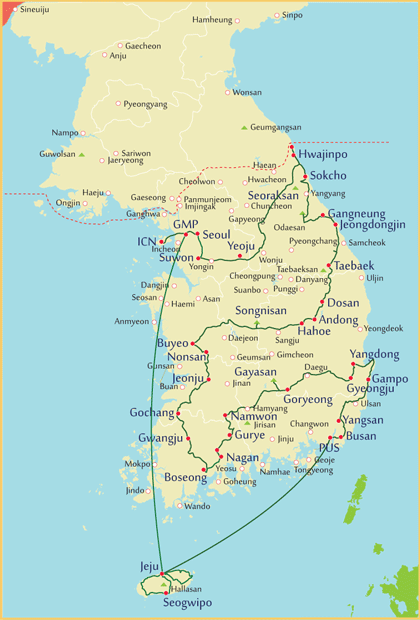 | Day 3 | Seoul - Suwon - Yeoju - Ganseong - Seoraksan | 280km |