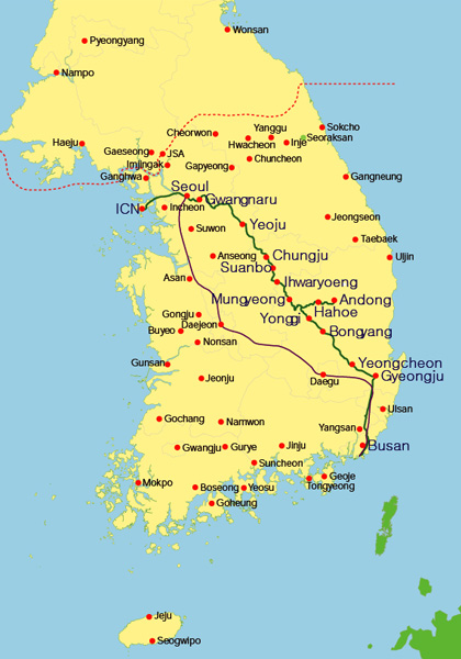 | Day 9 | Yonggi - Yeongcheon - Gyeongju | 128km |